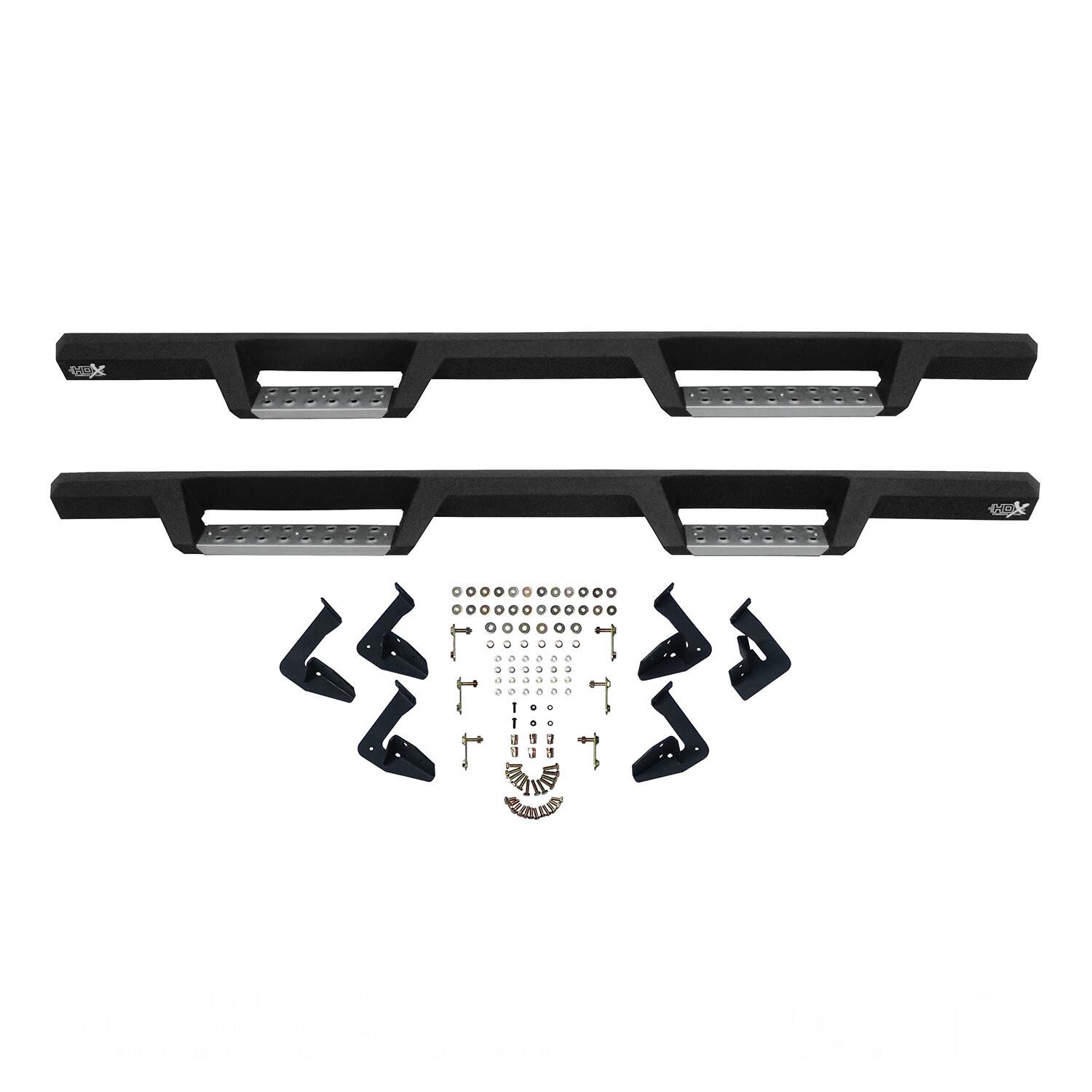 These Nerf bars offer solid 1-piece construction in your choice of stainless or mild steel that's primed to endure. The heavy-duty removable die-stamped foot plates create a high-traction step area that ensures safe footing even in the toughest conditions. Our signature notched bar design truly sets the HDX Drop Nerf Bars apart. They offer more than 2 extra inches of toe/heel placement when compared to our competitors - you won’t have to tiptoe around functionality. Clad in a textured black or stainless powder-coated finish, these side steps are a flawless addition to any truck, SUV or off-roader. They’re finished with corrosion-resistant powder-coat (even in the stainless finish option) and feature a die-stamped stainless steel step area for ultimate durability and traction. They install snugly against your rocker panels, providing a solid fit with a rugged look that protects rocker panels from damage. HDX Drop Nerf Bars come with a vehicle-specific mount kit, complete with all the installation hardware and instructions you'll need. There's no drilling required for most applications, and you can choose from a cab length or wheel-to-wheel style. Simply bolt them on and elevate your truck's aesthetics and functionality today.