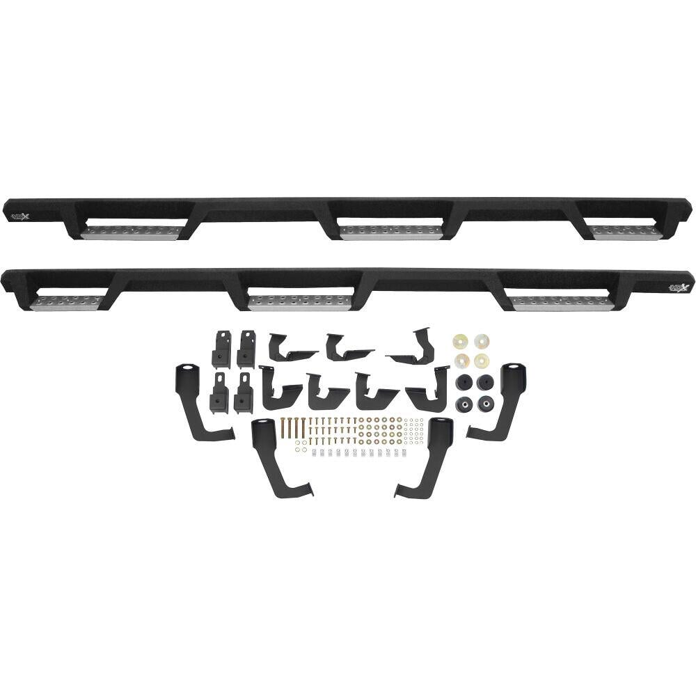 Westin's HDX Drop Wheel-to-Wheel Nerf Step Bars feature a notched bar design with a 3rd step location for easy bed access. They provide strong traction with over 2 inches more of toe/heel step area than our competitors, giving truck owners a solid fit and rugged look. The longer length of our HDX Drop Wheel-to-Wheel Nerf Step Bars provides added space, durability and access for drivers and passengers. Includes mount kit and is offered in a variety of vehicle specific applications. Bolt-on installation so no drilling required on most applications.