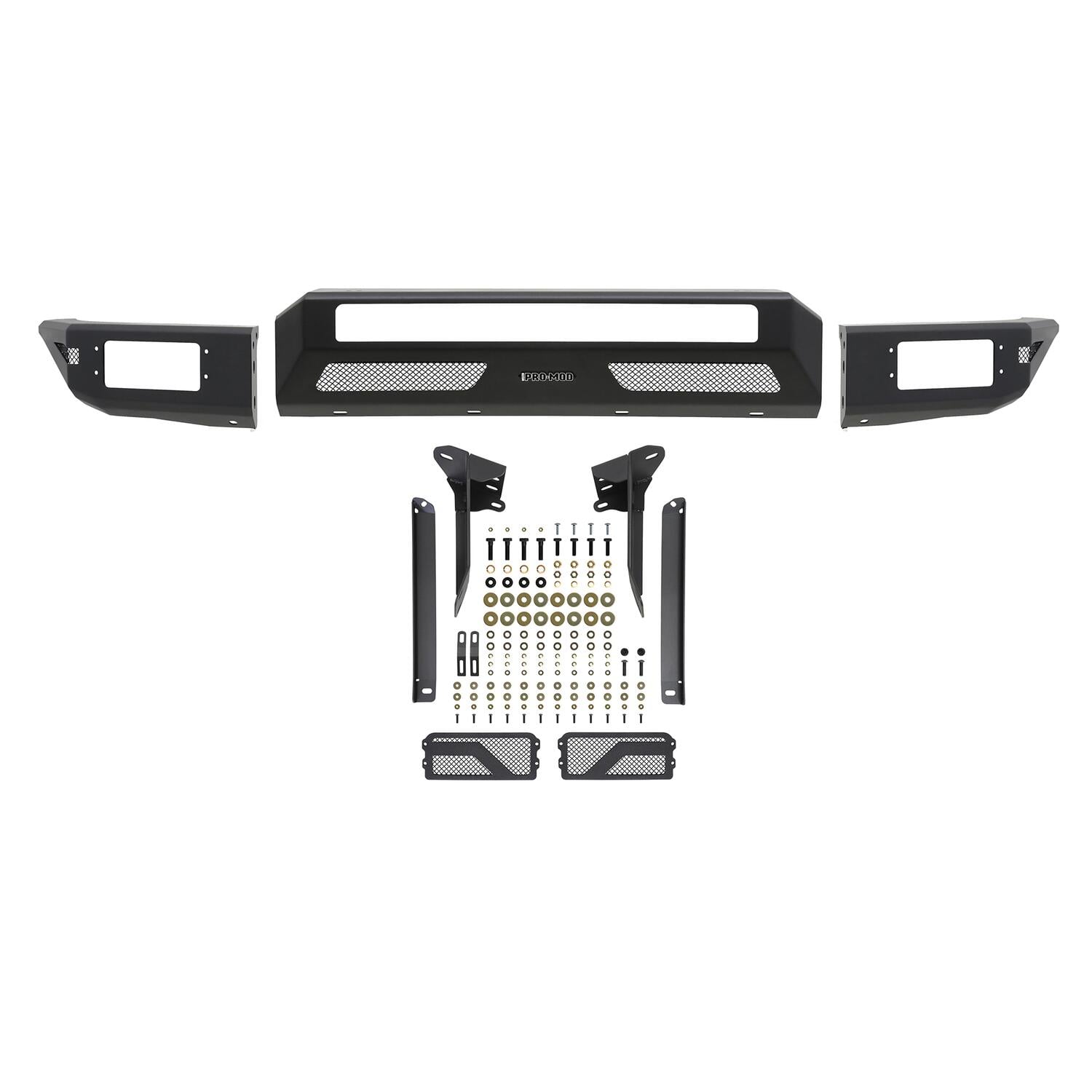 Westin’s Pro-Mod Front Bumper combines enhanced vehicle protection, with great looks. Pro-Mod’s revolutionary lightweight modular design is uniquely engineered with outrigger reinforcement brackets to provide maximum front end protection without compromising on strength, integrity or durability. The “high and tight” bumper profile creates a greater approach angle, which significantly improves off-road driving capabilities. The lightweight design also requires smaller shipping packages which dramatically reduces shipping costs. Pro-Mod bumpers feature a textured black finish with an e-coated base coat, providing long lasting corrosion protection from the elements. Once you see the Pro-Mod Front Bumper, the choice becomes obvious.