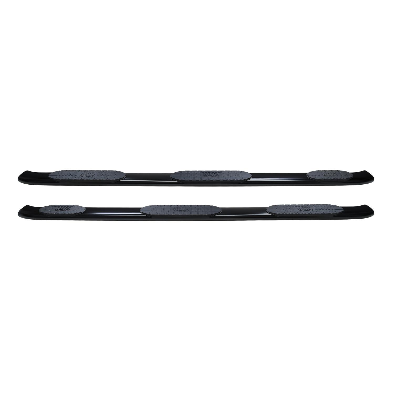 Westin Pro Traxx 5 inch nerf step bars feature a 5 inch oval tube with a heavy-duty step pad that gives you a wider and more secure step area. This will make sure it is safer and easier to get into your vehicle. The bars have a 30 degree bend at each end and seamless domed end caps so there are no seams or exposed bolt heads. This gives the Pro Traxx a clean and finished look that most other bars can't come close too. The bars come in two finishes, stainless steel or a black powder coated steel. Installation is bolt-on so there is no drilling into your vehicle and these are backed by a Westin warranty. The stainless bars have a lifetime warranty while the black powder coat have a 3-year warranty.