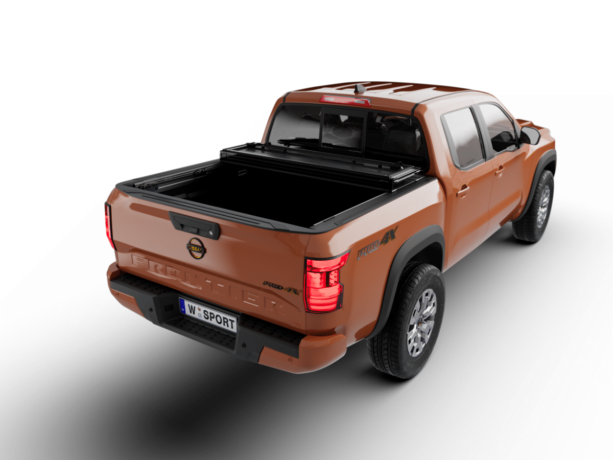 • Flip-up tri-fold design: One-hand cable latches allow quick partial or full bed access without cover removal.