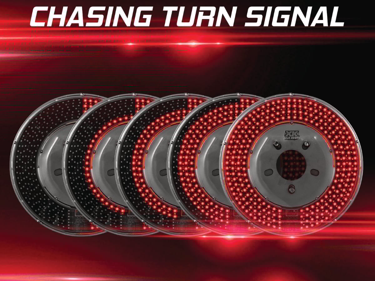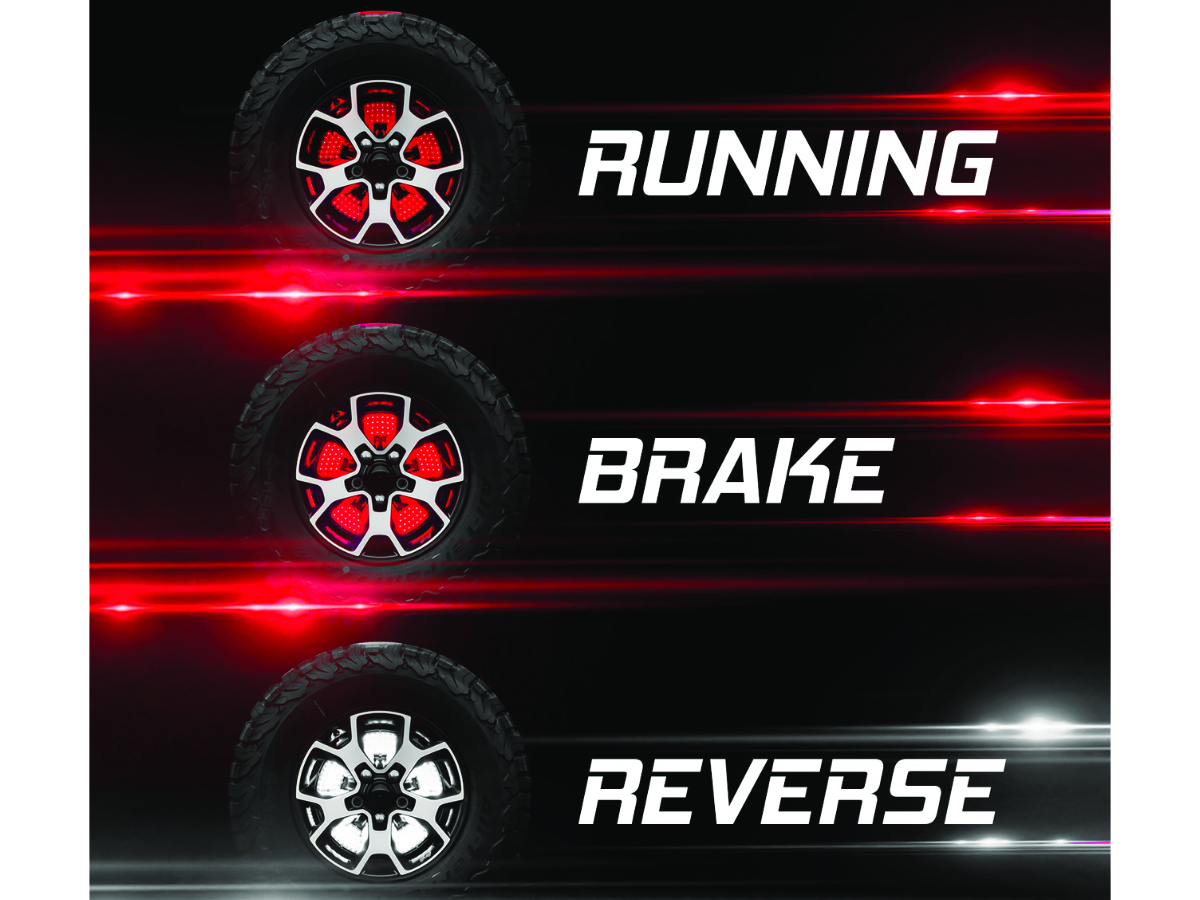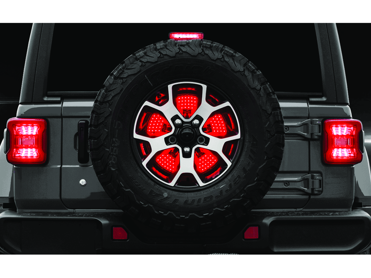 Mysterious light unexpectedly emitting from the iconic (and probably epic) backup wheel of your vehicle, like a fighter jet nozzle ready to burst power. Unlike other spare tire light with sparse dotted LEDs, XKGLOW state-of-the-art LED disc illuminates the entire surface, so light is visible between every spoke. The sequential turn signal is our favorite function and you will never get tired of watching it in action. The integrated reverse mode illuminates the wheel in ultra bright white light that no one can miss.